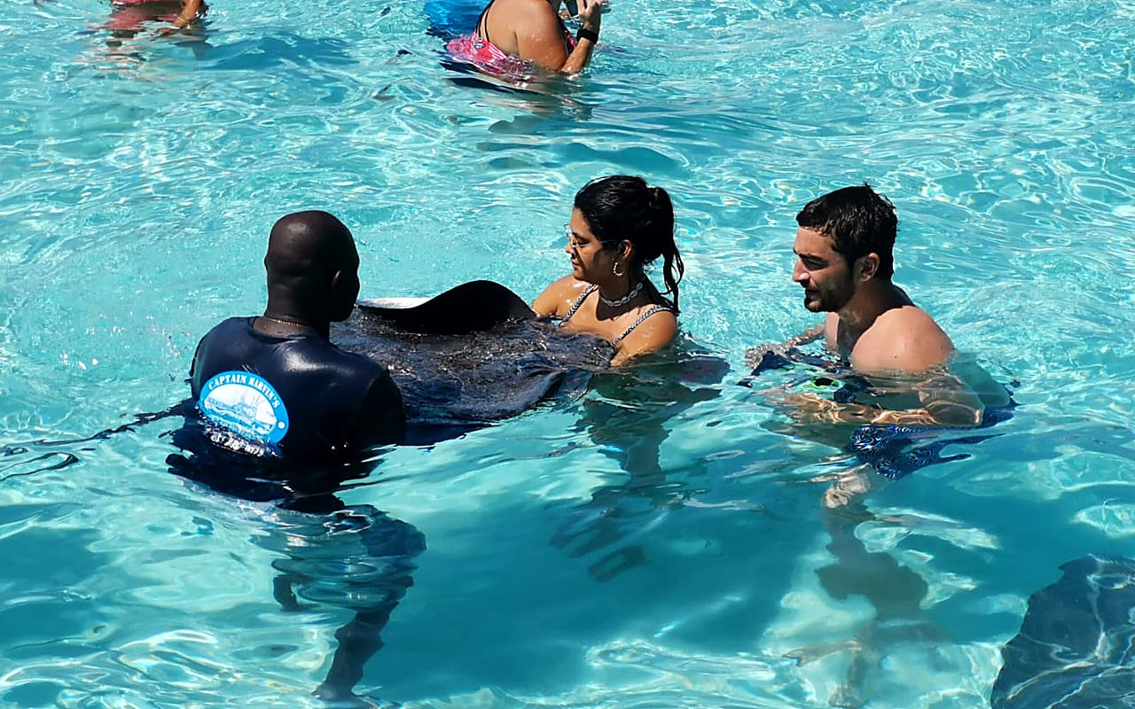 Swim and interact with wild stingrays in the shallow waters of Stingray City.